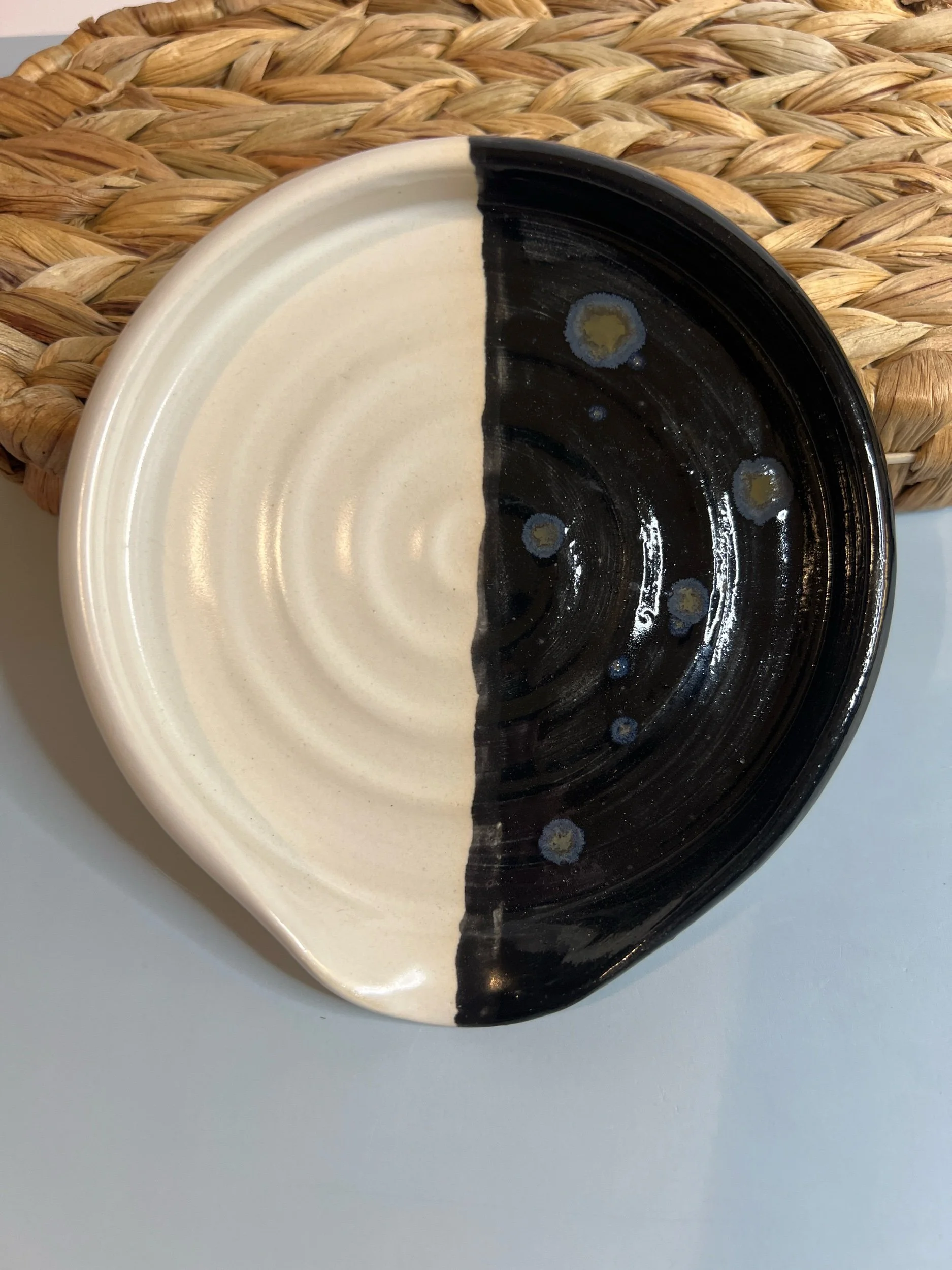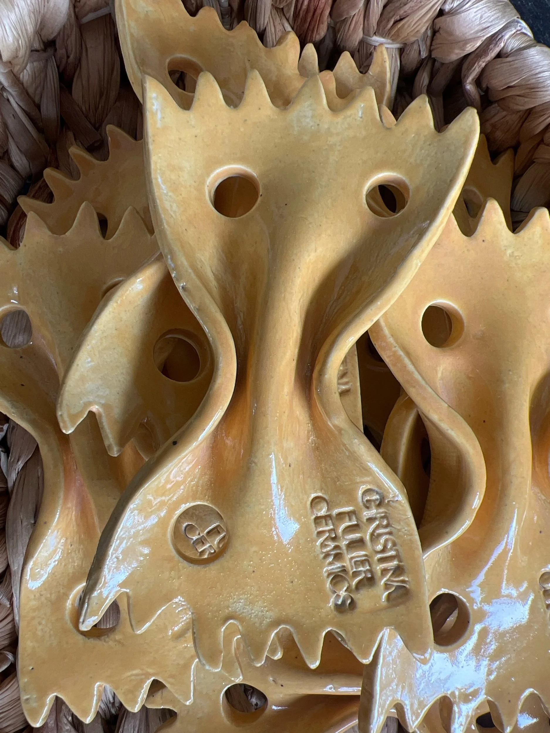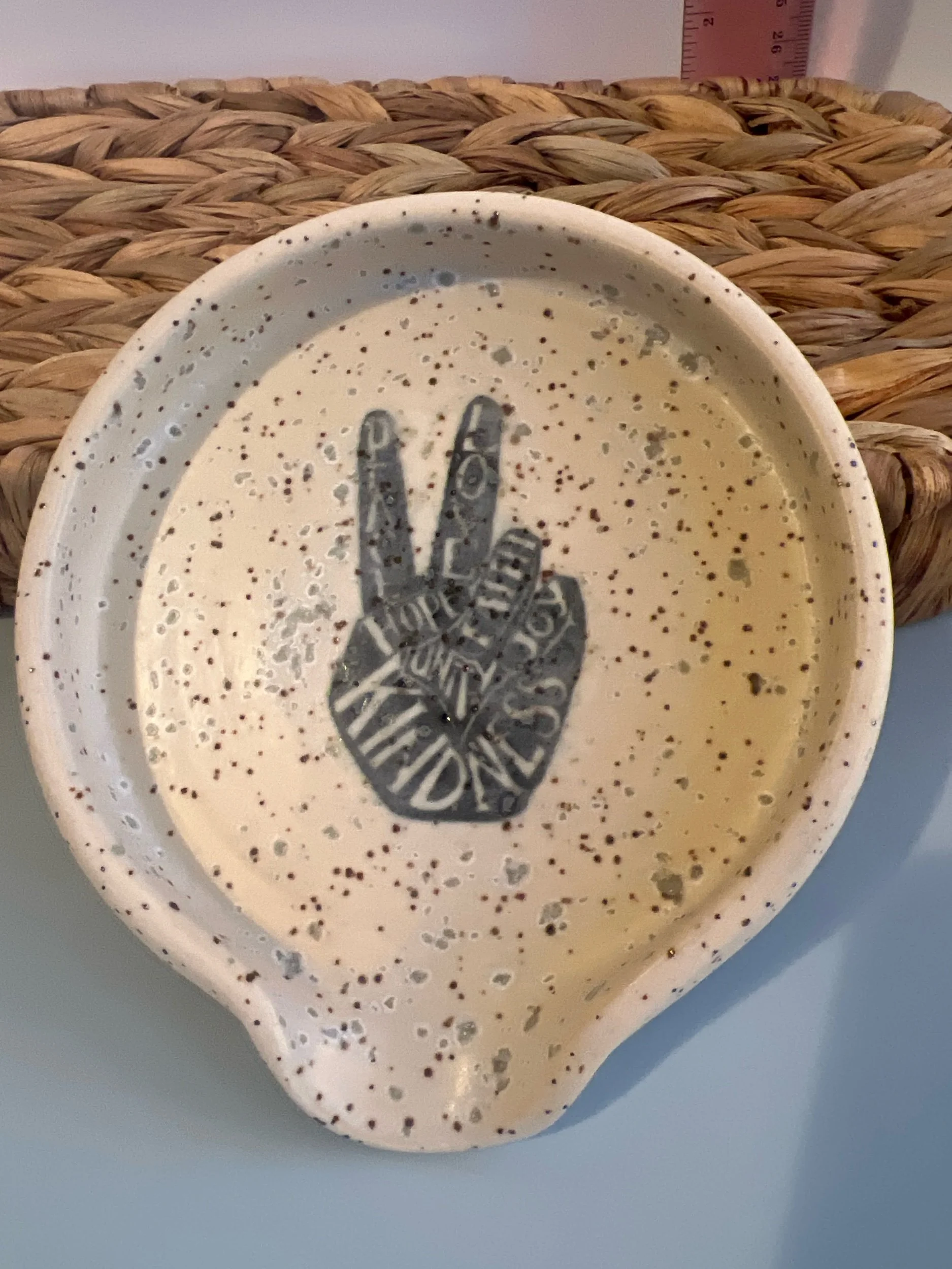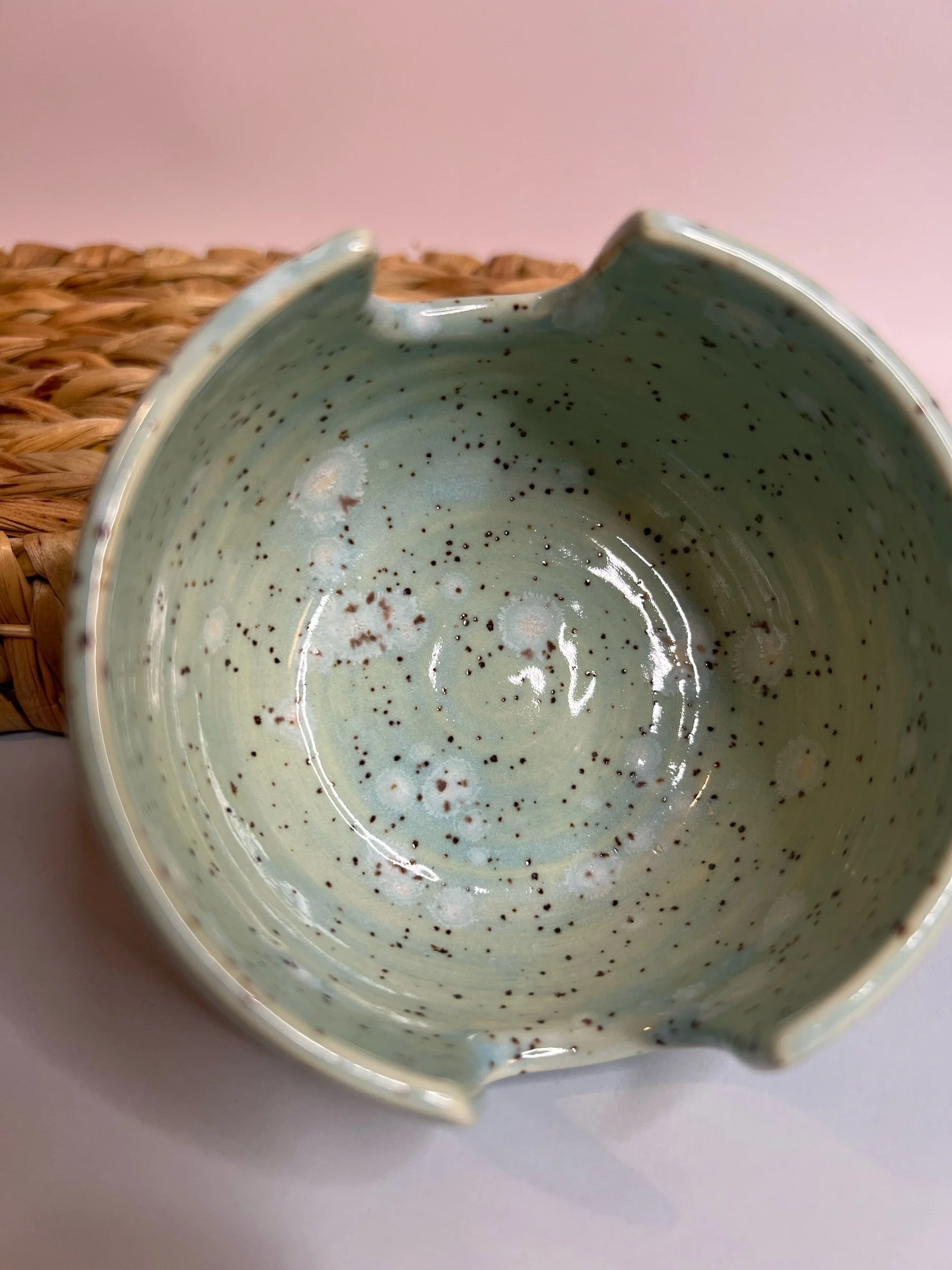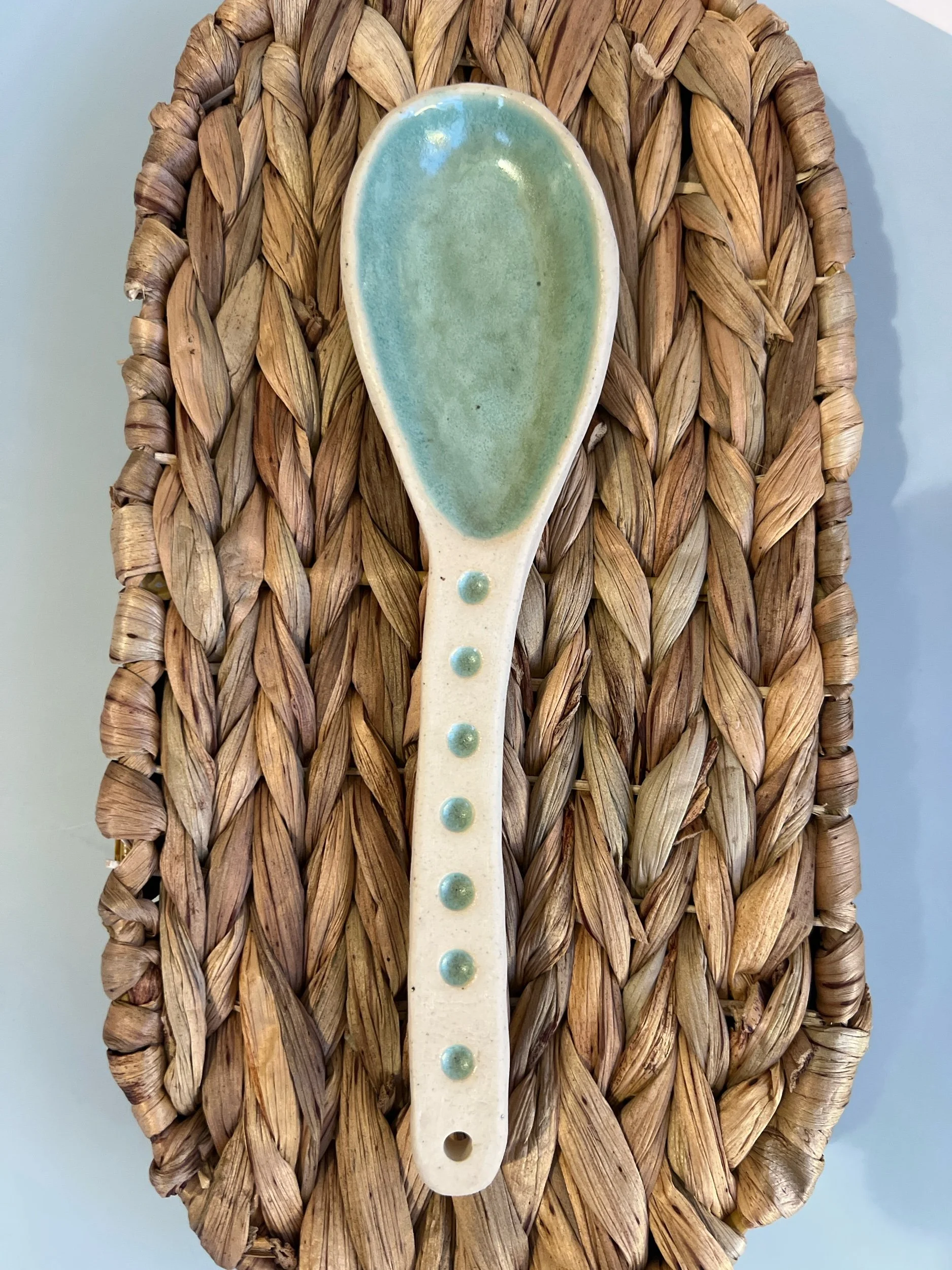 Categories: All Small and Fun-Miscellaneous Hooks Baking and Serving Dishes Mugs, Cups, and Tumblers Tumblers/Glasses Sip Cup Sets Mugs For The Kitchen Spoons and Scoops Garlic Grater Dishes Sponge Holders Spoonrests Herb Strippers Plates and Dishes Hand Painted/Carved/Sculpted Snack Dishes Gummy Fish Cheez Crackers 4-5" 3-4" 2-3" Bowls Pasta Bowls All Things Jewelry Earring Stands Ring Dishes Earrings Vases, Planters, and Flower Frogs Flower Frogs Planters Vases Pitchers, Teapots and Jars All / Spoons and Scoops | Garlic Grater Dishes | Sponge Holders | Spoonrests | Herb Strippers | Bowtie Pasta Herb Strippers $15.00 Sold out Black crystal Glaze Spoonrest-Shallow $18.00 Seagull Spoonrest $18.00 Sold out Oyster Spoonrest $18.00 Sold out Green Crystal Glaze Spoonrest $18.00 Sold out Walrus Spoonrest $18.00 Sold out Black Crystal/White Spoonrest $18.00 Sold out Dark Clay Blue Spoonrest $18.00 Sold out Blue Swirl Garlic Grater Dish $16.00 Sold out Pink Swirl Spoonrest $18.00 Sold out Lightest Green Crystalline Glaze Sponge Holder $20.00 Sold out Blue Drips Sponge Holder $20.00 Sold out Pomegranate Spoonrest $18.00 Sold out Pink Scoop-5” $18.00 Sold out Pink Heart Spoon-10.5” $22.00 Turquoise Spoon-7” $18.00 Cactus Green Scoop-8” $22.00 Peace Sign Spoonrest-Satin White with Sage Green Crystal Glaze $18.00 Sold out Sand Dollar Spoonrest-Lightest Blue $18.00 Sold out